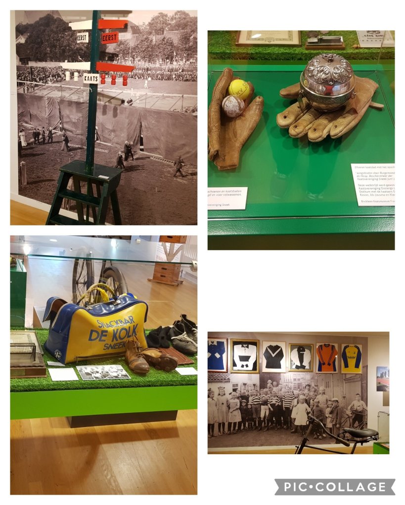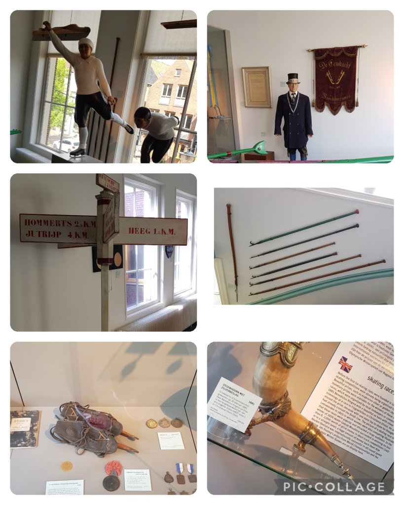 Sport. In de ijszaal en een apart ingericht deel van het museum ging het over een aantal sporten. In de ijszaal over schaatsen. Hoewel ik niet echt goed kan schaatsen is ook dat een deel van mijn leven. Dit vooral door de aanwezigheid van schaatselfstedentocht die door mijn geboorteplaats (Bolsward) kwam. Vroeger keer je het eerst op de tv en als ze dan bijna door Bolsward kwamen snel op de fiets de stad in om het live mee te maken. De spanning en voorbereiding is ook een mooi fenomeen zowel in als buiten Friesland. Op de foto hieronder heb ik een compilatie gemaakt van de dingen in de ijszaal die over schaatsen gaan.